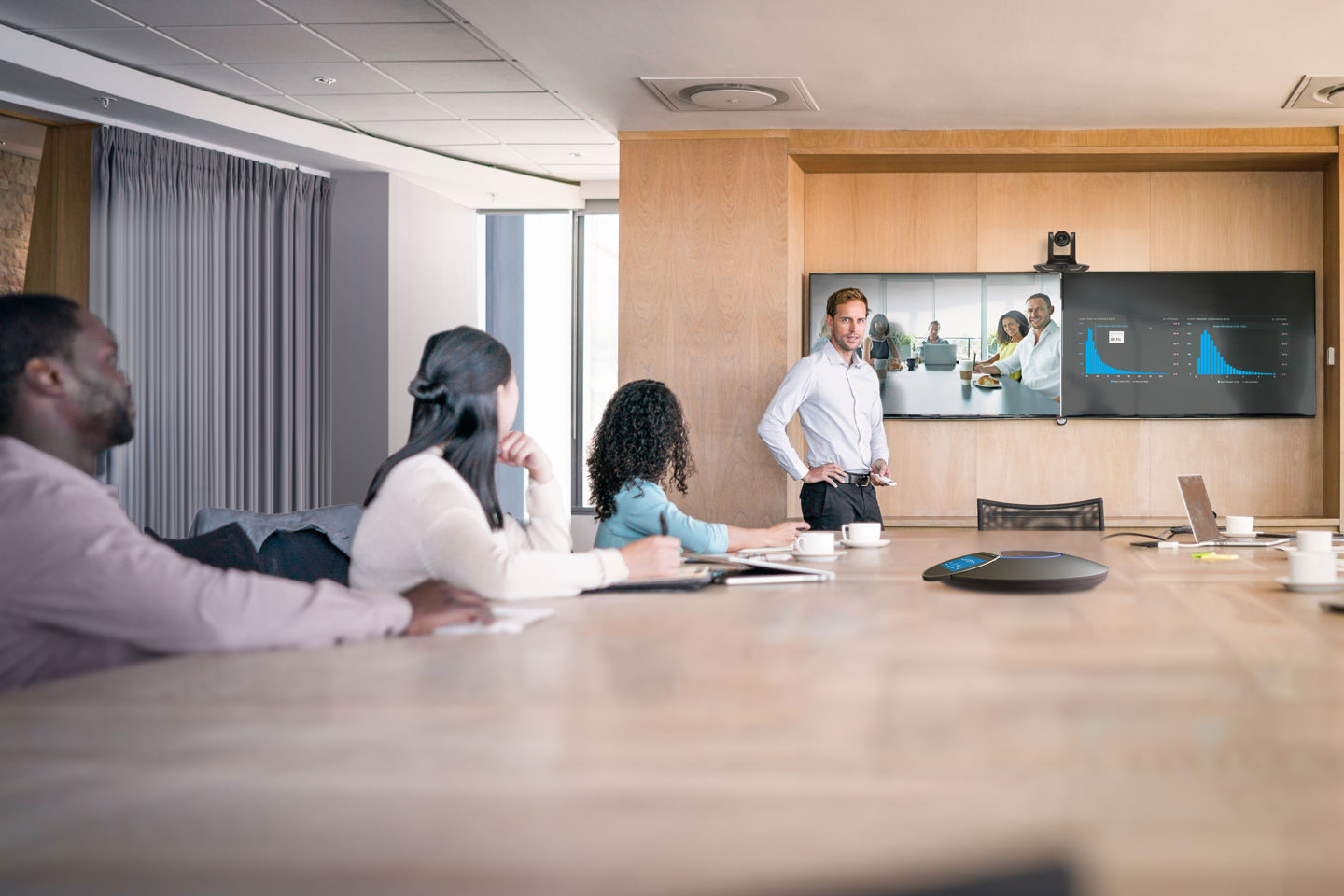 Flexible features engineered for larger conference and meeting spaces. Intelligent video and audio create an authentic, effortless experience. A distraction-free meeting environment helps keep participants focused and engaged.